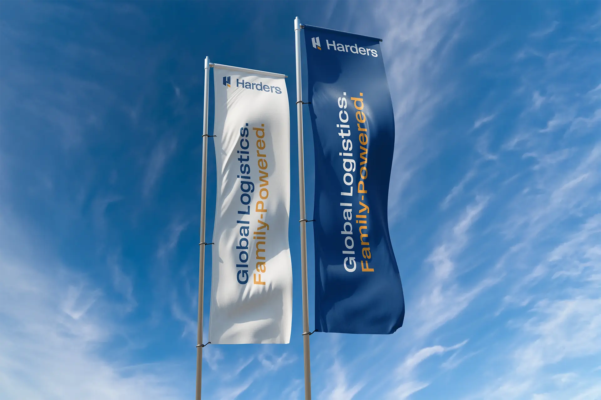 From strategy through to execution, the transformation was developed end-to-end in-house. The focus was not simply to design a new logo, but to create a structured, scalable brand system. This included refining and shortening the name, developing a single clear symbol, defining a cohesive colour palette and establishing a unified tagline. A custom typeface, Harders Sans, was created to strengthen brand distinctiveness and consistency. Beyond the core identity, the work extended into operational reality: templates, documentation, Microsoft theming, social assets, signage, customs documentation and internal communications. Each element was designed to ensure clarity, usability and long-term governance.