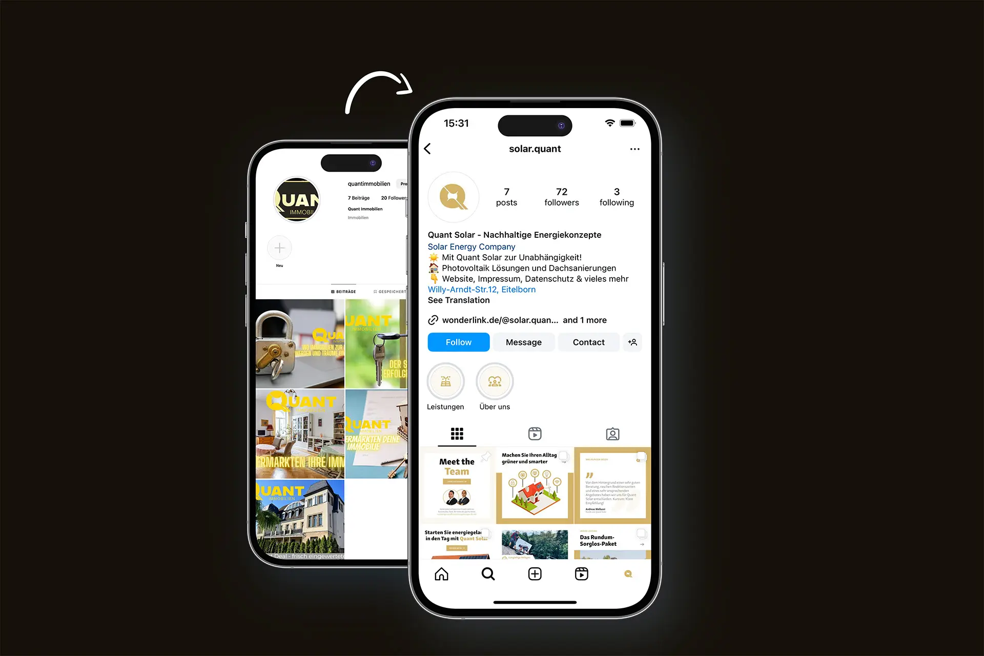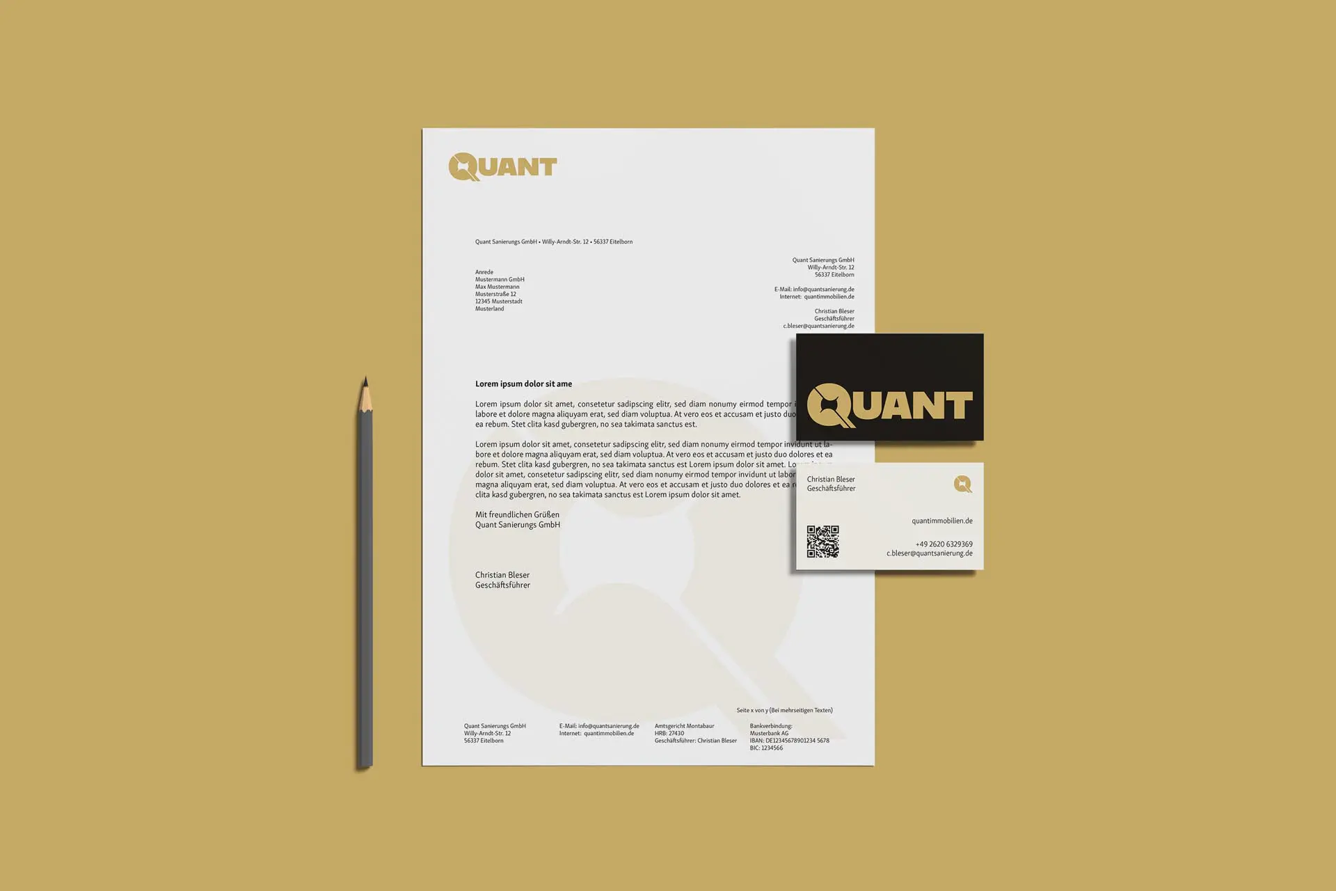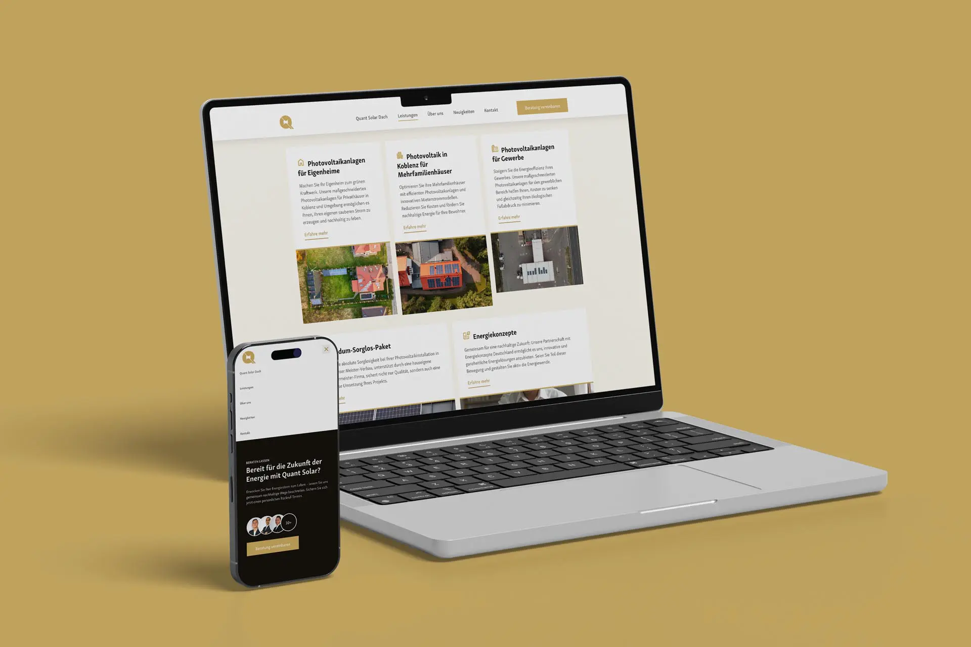 The final solution included a comprehensive brand identity that clearly delineated Quant and its sub-brands. The new logos are minimalistic yet impactful, reflecting the company’s commitment to innovation and quality. The brand guidelines ensure consistency in the application of the logo, typography, and colors, providing clear instructions on how to represent the sub-brands in a way that aligns with Quant’s overarching identity. The use of Terra Gold and Terra Noir created a striking contrast, enhancing the visual appeal and making the brand stand out in both the real estate and renewable energy markets. In addition to the branding, a sales-focused, SEO-optimized website was developed, along with various print and digital materials, including flyers, social media posts, business cards, and stationery, to solidify Quant's market presence.